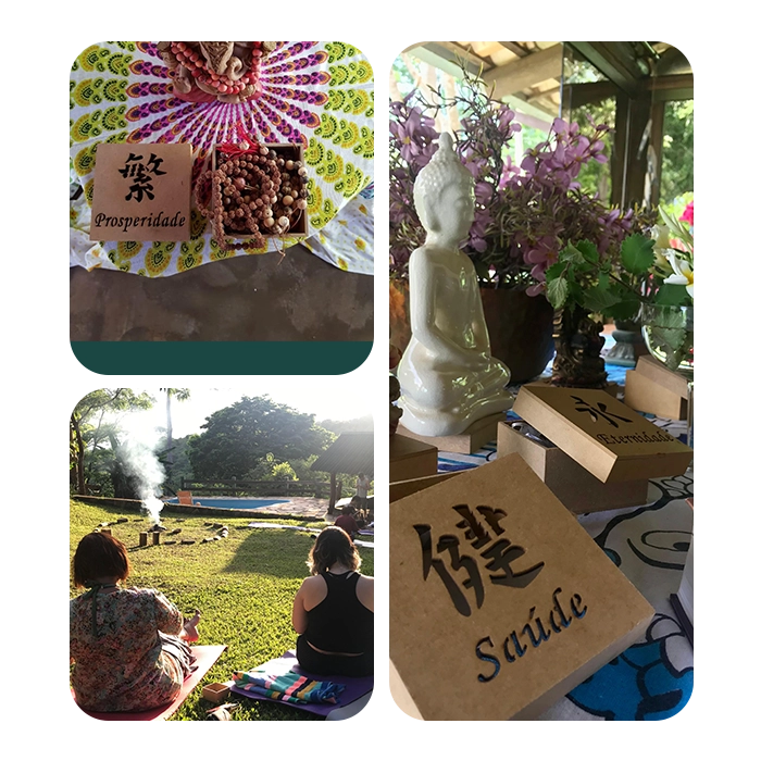 Após a confecção, não apenas colocamos o colar no pescoço. Faremos um ritual de saudação e bênção do seu amuleto utilizando os cinco elementos da natureza, ativando a energia do Japamala para que ele sirva como seu escudo e guia.